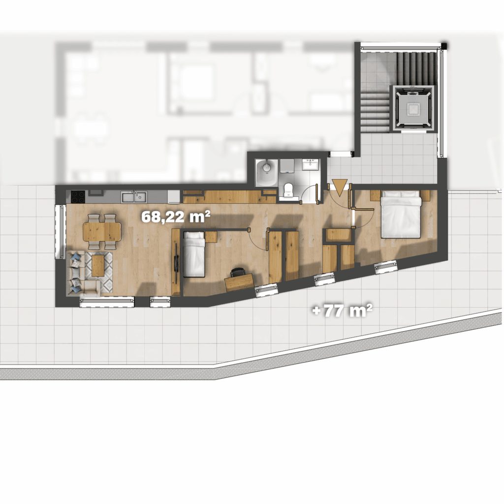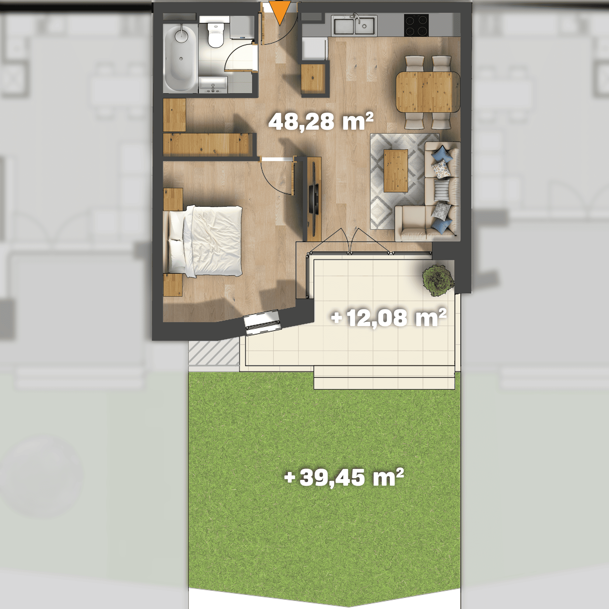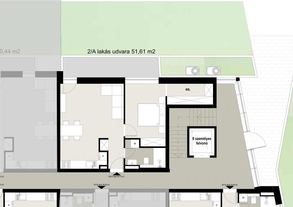48,28 m2 + 12,08 m2 terasz + 39,45 m2 udvar