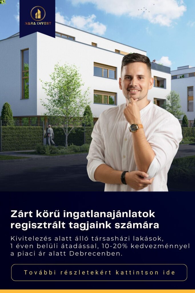 Új építésű társasházi lakások 5-8 perc sétára Debrecen belvárosától olcsóbban, mint egy lakótelepi lakás? Igen! Zárt körű partnereink így vásárolnak ingatlanokat! Regisztráljon most zárt körű rendszerünkbe, ahol közeli átadású, új építésű ingatlanok közül válogathat 10-20% kedvezménnyel.